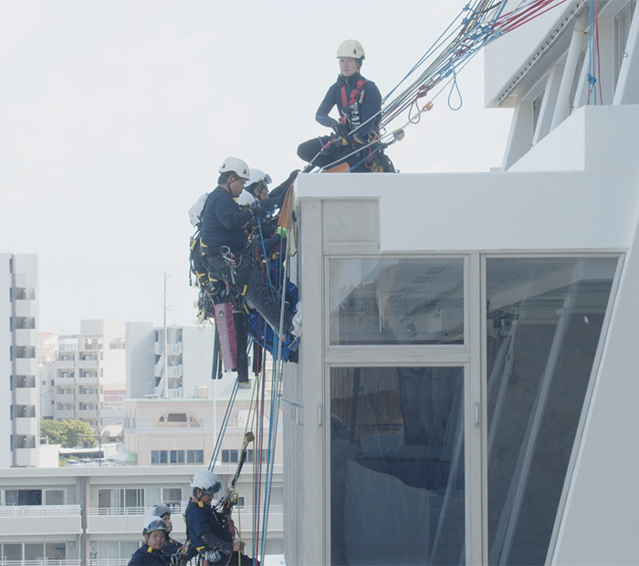 ロープアクセスは、当社においても特に成長が期待される事業領域のひとつ。高い技術力と安全性を備えたこの新しい施工スタイルを通じて、建物の維持管理における可能性をさらに広げていきます。